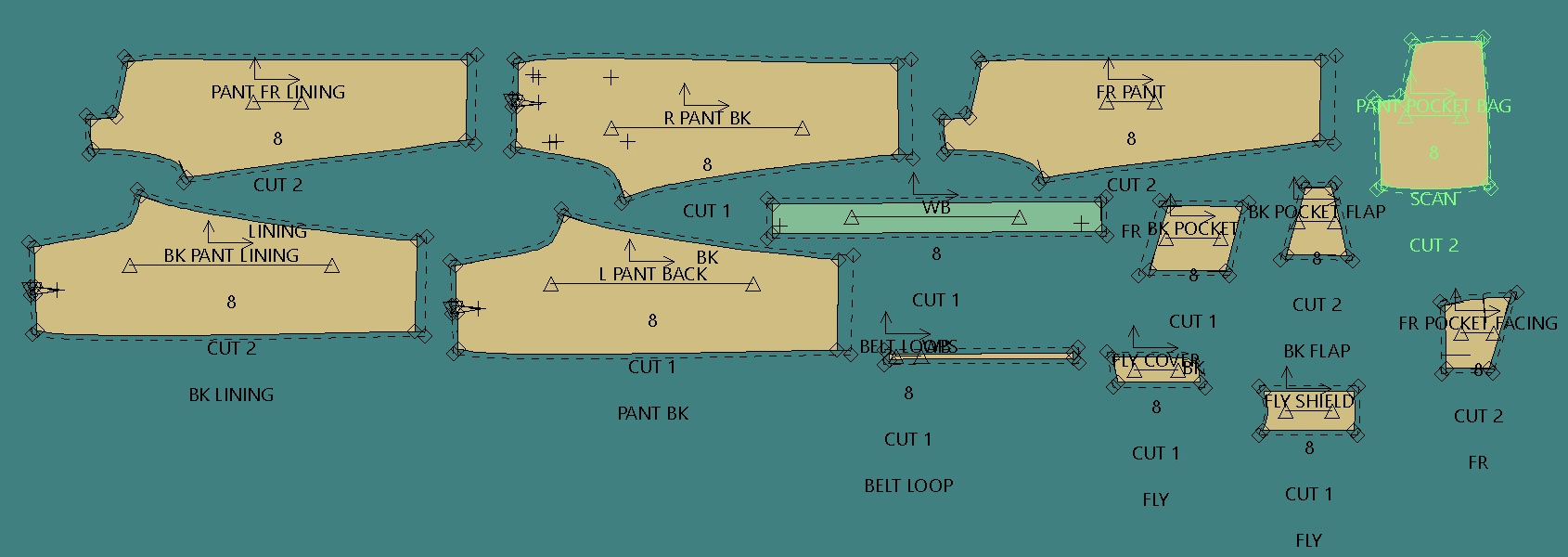 Using the software Gerber Accumark, I rendered a full pattern, marker, and model editor.